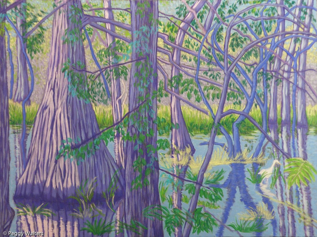 "Egret In Wonderland, Lake Martin", 30" x 40", Oil On Canvas